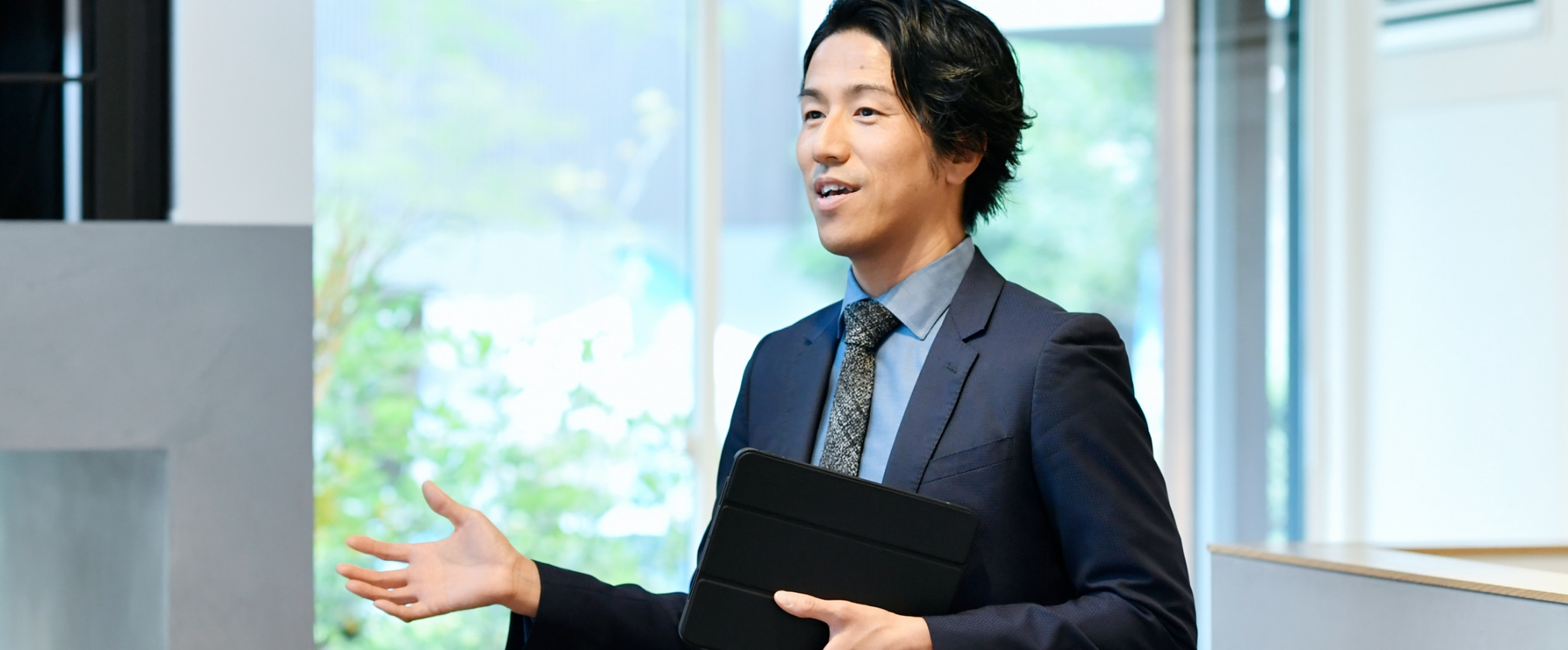 前職で住宅会社の営業職として勤めていたときに、新規事業で建築家デザインに関わり、感銘を受けたことが転機になりました。唯一無二の住まいをお届けしたいと考えたとき、アールギャラリーの展示場がまさにドンピシャで、「メーカーでこんなにカッコいい家が建てられるのか」と驚いたのを覚えています。