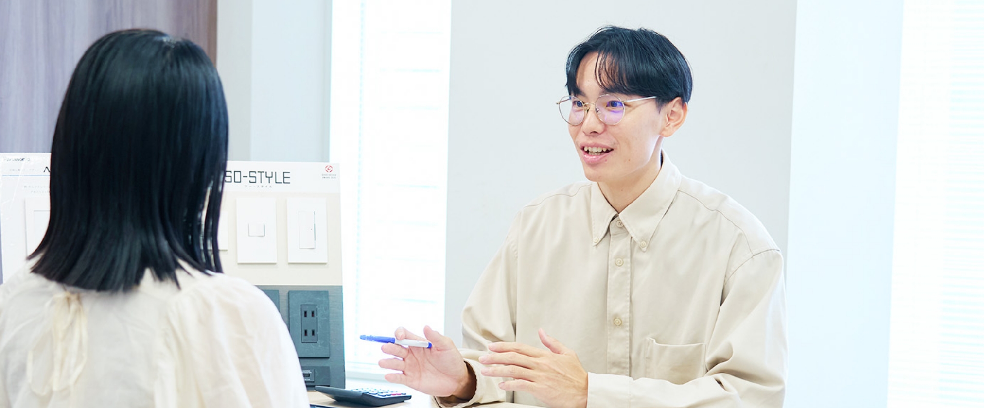 注文住宅のお客様と、設計に関する打合せを行います。お客様の理想の住まいを実現するため、ご要望を丁寧にヒアリングし、具体的な提案を行います。