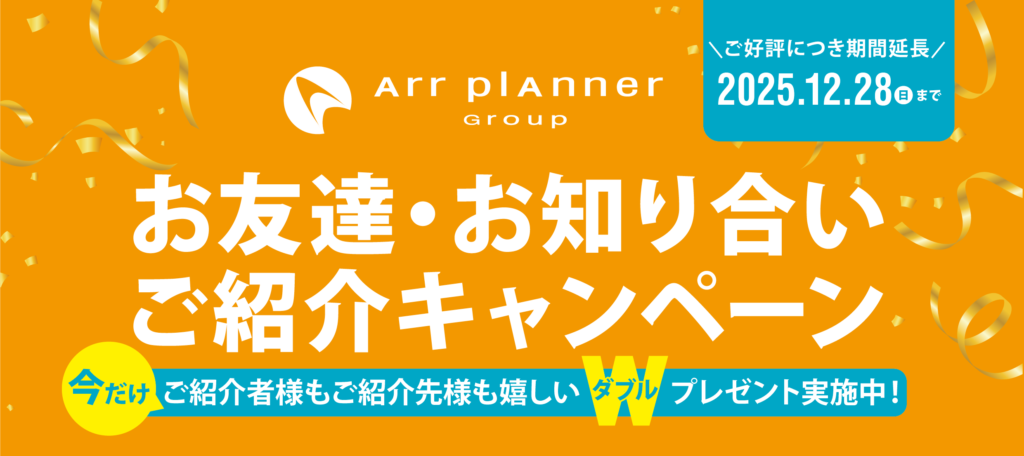 現在実施中のアールプランナーお友達・お知り合いご紹介キャンペーン【Wプレゼント】について、多くのご紹介を頂きありがとうございます。