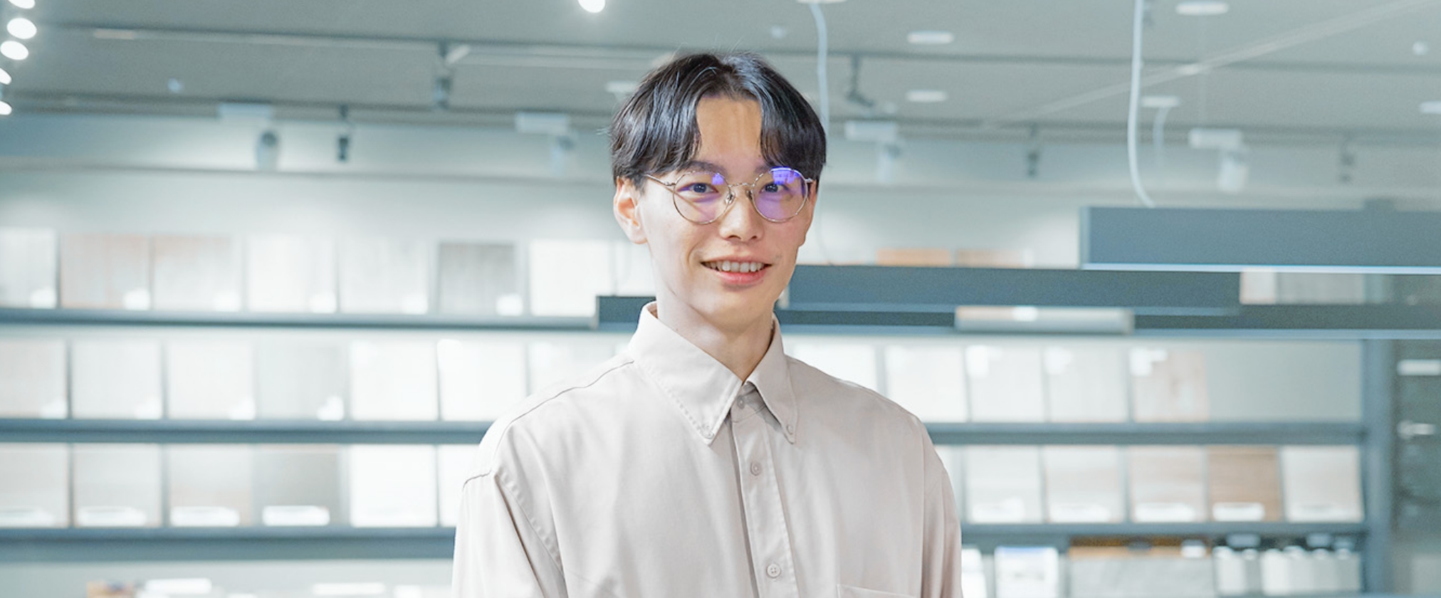 お客様のご要望を伺いながら、自由度の高いデザイン提案ができるので、提案の幅が広く、それに応じて自身の知識やスキルも日々増えていくのを感じます。幅広い知識を吸収しながら、お客様の期待を超える提案ができた時、そしてそれが形になった時、大きな達成感とやりがいを感じます。